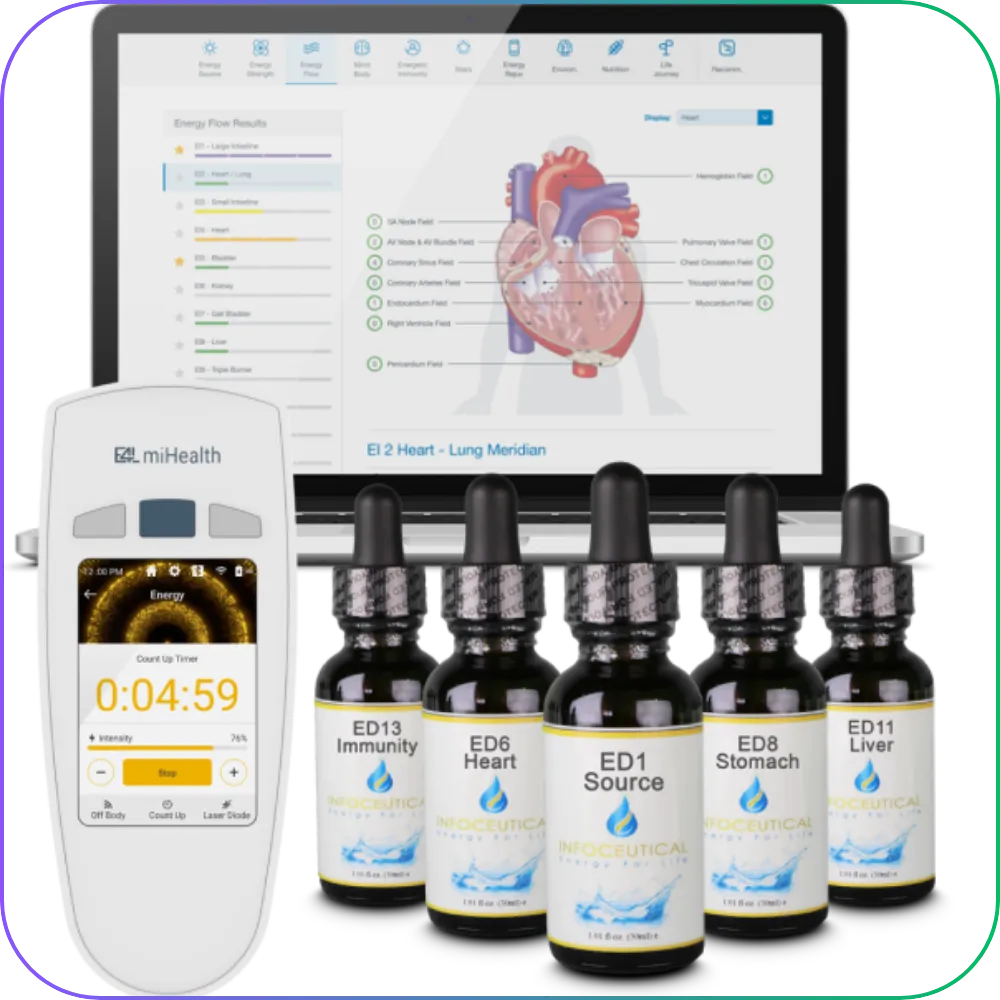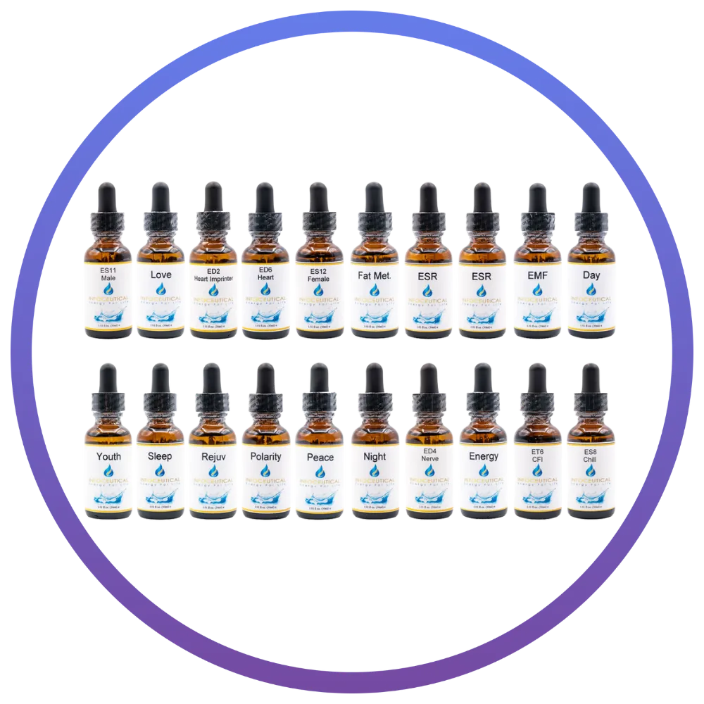 What are Infoceuticals? In physics, information guides the body’s energy, affecting our health. So, if information in the body is distorted or blocked, this can be the root cause of health problems. By introducing corrective information to the body, we can help restore the body’s movement of energy and the body’s ability to heal and maintain itself. Infoceuticals provide this corrective information through the properties of structured water.